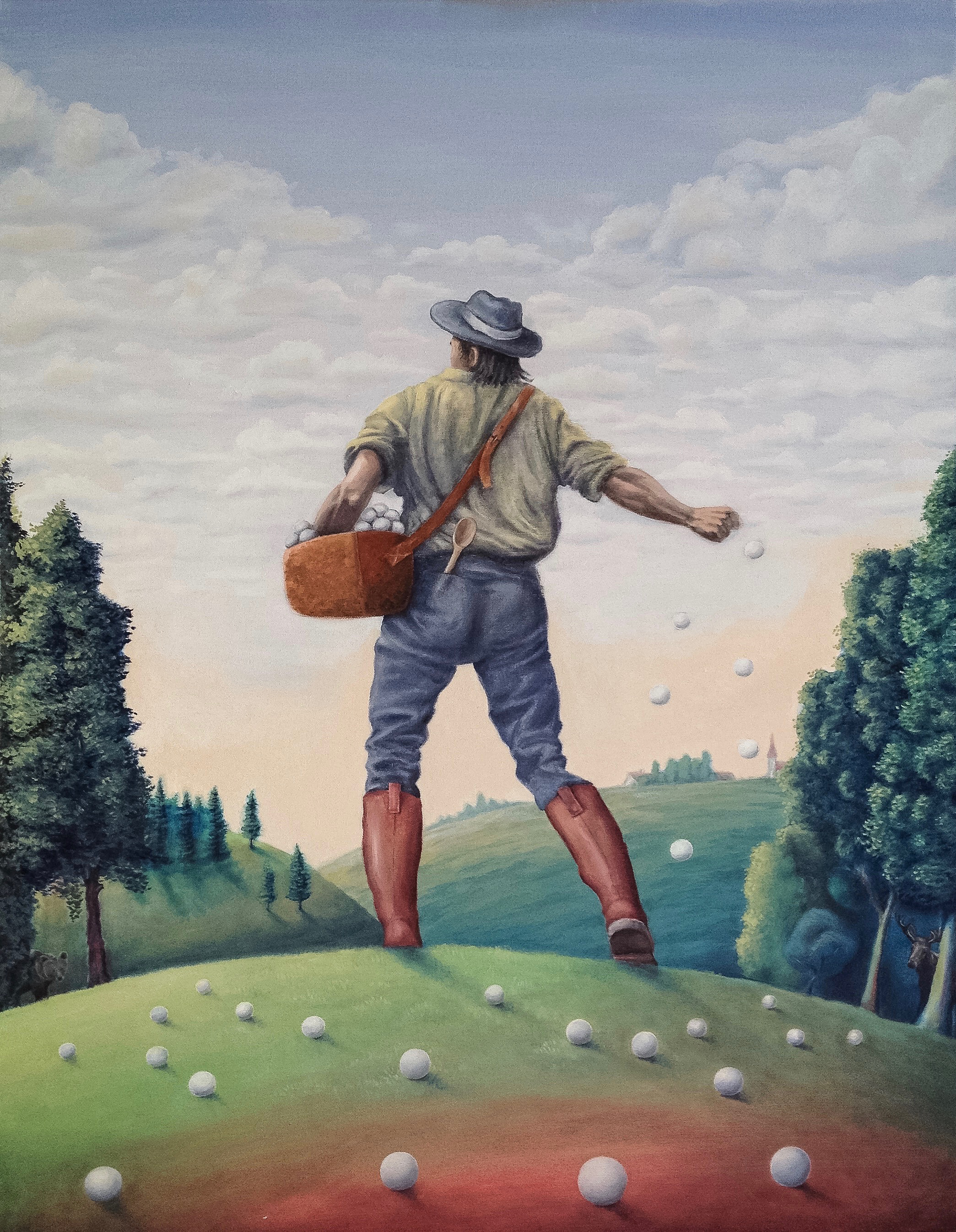 “Kahtlev karu, püha põder ja Mr Jakob” õli, lõuend, 90x100 cm 2016 (erakogus)